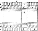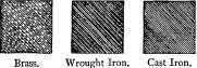| Lines in sectional shading or cross-hatching made to denote the material of which the piece is composed—lead, wood, steel, brass, wrought iron, cast iron | 81 |