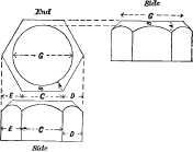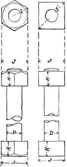 | Comparison of hexagon and square heads of bolts; chamfers | 120 |