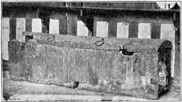 Whatever may be the truth of this, his body was placed in a wooden coffin, portions of which are still preserved in the chapter library at Durham.