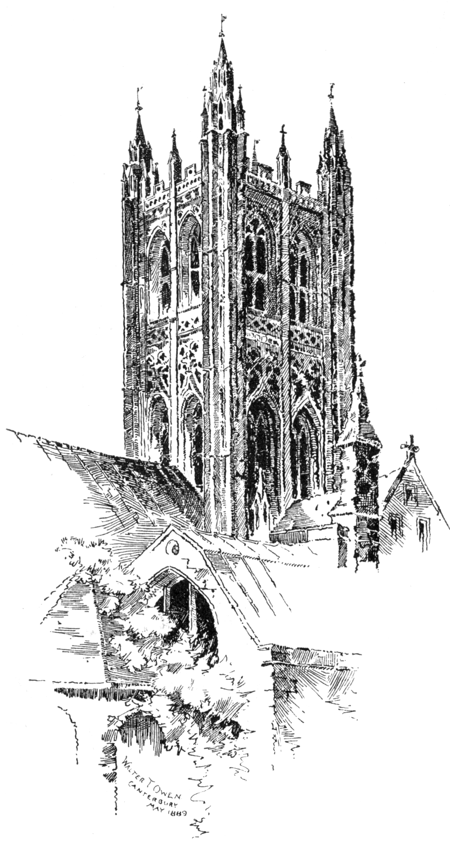 For the reproduction of the drawings of the various parts of the Cathedral, and the arms on the title page, by Mr. Walter Tallent Owen, the editors are greatly indebted to the artist, from whose volume, “Bits of Canterbury Cathedral,” published by W.T. Comstock, New York, 1891, they have been taken. Others are taken from Charles Wild’s “Specimens of Mediæval Architecture,” and from Carter’s “Ancient Sculpture and Paintings.”