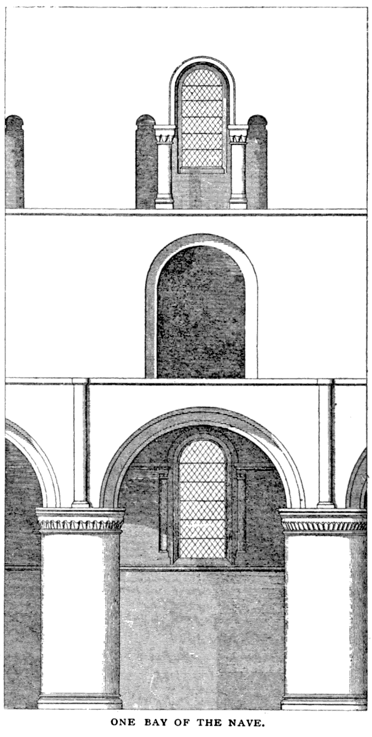 The moderate height of the Nave (65 ft.), and the treatment of its details, are quite characteristic of the best work of the period when it was erected.