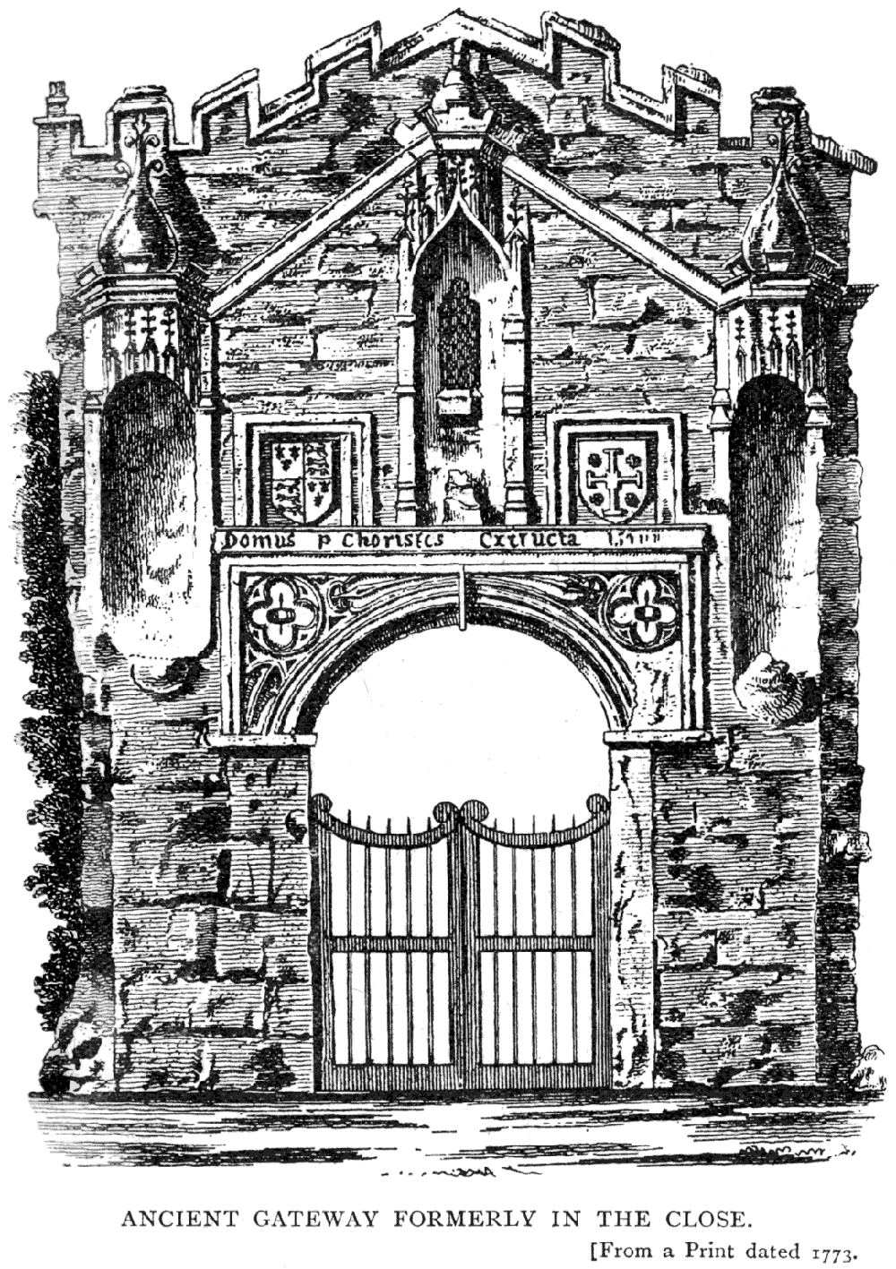 One other important thing which Bishop Langton did was to fortify, or at any rate to add greatly to the fortifications of the cathedral. He surrounded the close with a high stone wall and constructed "two beautiful gates" on the west and south [9] sides of the close. Truly, had he been able to see the result of his fortification, he might have said with the Preacher: "All is vanity and vexation of spirit"; for if there was one thing which brought down on the cathedral the extremities of hatred and violence in the Civil Wars, it was that it proved able to be held as a fortress against those who came up against it.