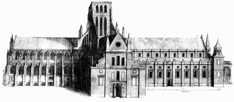 It was, no doubt, fortunate that Inigo Jones confined his work at St.[page 68] Paul's to some very poor additions to the transepts, and to a portico, very magnificent in its way, at the west end. He would have destroyed, doubtless, much of the noble nave in time; but his work was abruptly brought to an end by the outbreak of the Civil War. The work had languished for some years, under the continuance of causes which I have already adduced. But Laud, as Bishop of London, had displayed most praiseworthy zeal, and King Charles had supported him generously. When the troubles began, the funds ceased. In 1640 there had been contributions amounting to £10,000. In 1641 they fell to less than £2000; in 1643 to £15. In 1642 Paul's Cross had been pulled down, and in the following March Parliament seized on the revenues of the cathedral.