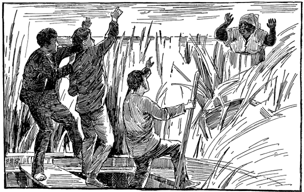 "It's of no use, boys," said Ned. "I know Maum Sally, and we're not going to get a word more out of her till supper is ready, so come on, let's have a plunge. It's all right, anyhow. My uncle and aunt have gone away for the day somewhere, I suppose, and will be back sometime to-night. If they don't come, I'll find a way to break into the house. It's my father's, you know, and one of my homes. In fact, I was born here. Uncle Edward lives here a good part of the time, because he likes it, and father lives in Savannah a good part of the year, because he doesn't like it here. Come, let's get a bath."