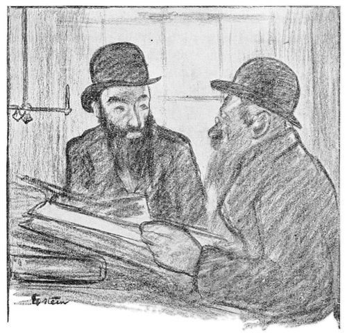 "I began to write English late in life," he said. "Israel Zangwill helped me to begin. He said he would correct what I wrote, but I wrote so much that Mr. Zangwill stopped reading it and told me to go ahead on my own hook. So I did. I have written infinitely in English, some of which has been published—Music of the Psalms; Education and the Talmud, which was issued by the United States government in the report of the commissioner of education; many articles on mysticism and other subjects in the magazine Ariel; The Mystery of the Golden Calf, The Music of the Ghetto, and many other works on the cabalistic mysticism. I have also written, Who Was Crucified? wherein I prove that it was not Jesus. If I kept on all day I could not tell you the names of all I have written. I have published many articles in the Jewish-American papers satirizing the rabbis, who consequently hate me. Much of 292 my work, indeed, is satirical. The world needs cleaning up a little, particularly the rabbis. Put the reformed and orthodox rabbis together and some good might come of them. I am not afraid of these people, whom I call silk-chimney rabbis, because they wear tall hats instead of knowing the Talmud. It was my own invention—'silk-chimney rabbis.'"