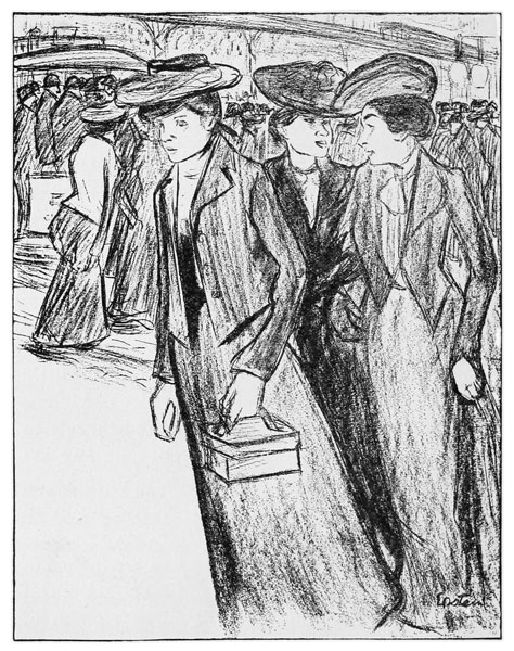 Sabina looked at him, her bosom heaving. His last words seemed to trouble her, but she sat in silence and appeared to listen to the conversation, which turned on a recent strike in the Ghetto. Finally she got up to go home, refusing Levitzky's offer to accompany her. Leaving the Anarchists still engaged in talk, she went into the street, which, altho it was after one o'clock, was still far from deserted.