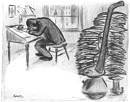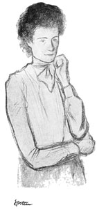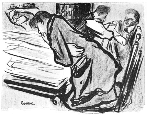 As Sabina passed through the street her attention was mechanically caught by the notice in a shop window, which was still dimly lighted, of an important labor meeting, to take place in a couple of days, at which a famous German Anarchist was to speak—a man who was coming from Europe to join the "Movement" in New York, whose books she had read and loved. Such notices always arrested her eager attention, and even now habit led her to stop by the window and dully read the entire poster. The thought of the coming event, which would once have been of palpitating interest to her, increased her remorse 309 and despair. Of such great activity as this she had rendered herself incapable. To go to any such meeting now would be hypocrisy, she felt. The cause she wanted to love and serve and still did love she could yet never again be wholehearted about. She bore with her a burden. She seemed to herself to be a sinful creature, and the devoted life she had led seemed poisoned by this terrible passion which controlled her. She felt she never again could look Levitzky in the face; for a terrible impulse in her was about to drag her from the pedestal where he had helped to place her; and to drag with her the man she loved from the impersonal height at which he stood.