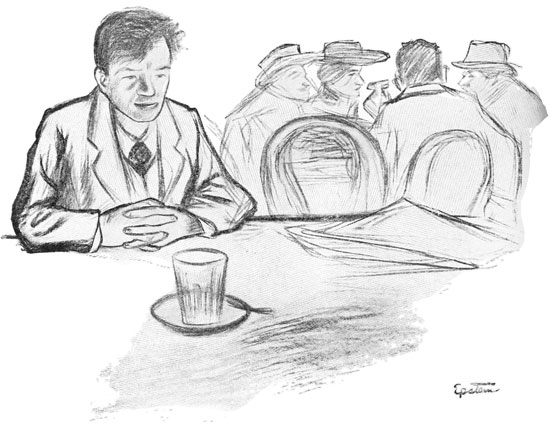 About three days later Blanofsky and his three friends were sitting in the café on Grand Street, drinking their eternal Russian tea and talking about Levitzky.