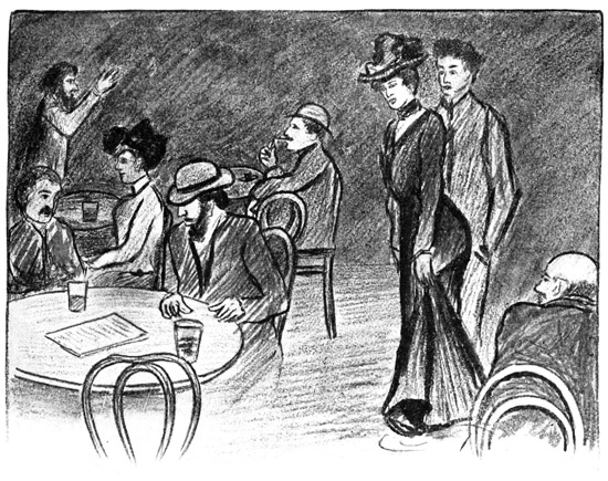 At this point, Levitzky entered the café. With him was the new arrival, the German Anarchist. To him Levitzky was talking with great animation. His words rolled over one another with enthusiasm.