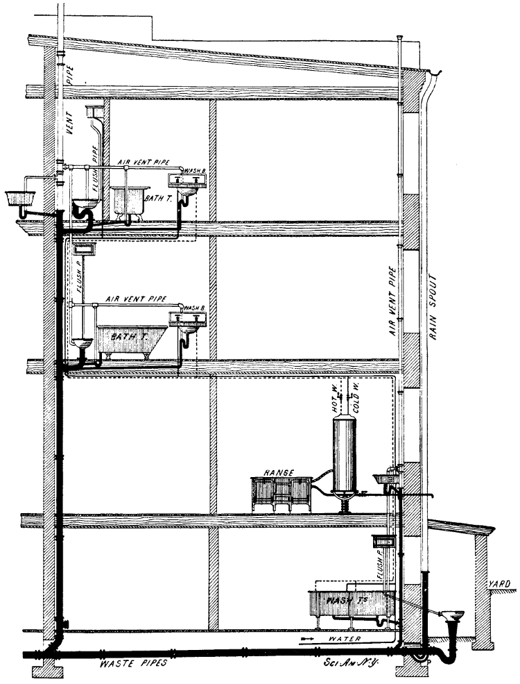 If the reader has been patient enough to have reviewed the preceding pages, the impression may have been formed that the notable inventions referred to represent all that is worth while to consider in this great field of human achievement. It would be a fallacy to entertain such a thought, for the little stars out-number the big ones, and the twigs of the tree are far more numerous than its branches. The great things in life are comparatively few and far between, and the bulk of human existence is made up of an unclassified mass of little things, sown like sands along the shore of time between the boulders of great events. So also in invention is its warp and woof made up of a multitude of little threads behind the gorgeous patterns of meteoric genius. Every hour of the day of modern life is replete with the achievements of invention. Look around the room, and there is not a thing in sight that does not suggest the material advance of the age; the books, the furniture, the carpets, the curtains, the wall paper, the clock, the mantels, the house trimmings, the culinary utensils, and the clothing, all represent creations of this century. So full is the daily life of these things, and so much of a necessity have they all become, that their commonplace character dismisses them from conspicuous notice. Take the most matter-of-fact and prosy half hour of the day, that at the time of rising, and see what a faithful account of the average man’s everyday life would present. The awakening is definitely determined by an alarm clock, and the sleepy Nineteenth Century man rolling over under the seductive comfort of a spring bed, takes another nap, because he knows that the rapid transit cars will give him time to spare. Rising a little later his bare feet find a comfortable footing on a machine-made rug, until thrust into full fashioned hose, and ensconced in a pair of machine-sewed slippers. Drawing the loom-made lace curtains, he starts up the window shade on the automatic Hartshorn roller and is enabled to see how to put in his collar button and adjust his shirt studs. He awakens[459] the servant below with an electric bell, calls down the speaking tube to order breakfast, and perhaps lights the gas for her by the push button. He then proceeds to the bath, where hot and cold water, the sanitary closet, a gas heater, and a great array of useful modern articles present themselves, such as vaseline, witch hazel, dentifrices, cold cream, soaps and antiseptics, which supply every luxurious want and every modern conception of sanitation. His bath concluded, he proceeds to dress, and maybe puts in his false teeth, or straps on an artificial leg. Donning his shirt with patented gussets and bands, he quickly adjusts his separable cuff buttons, puts on his patented suspenders, and, winding a stem-winding watch, proceeds down stairs to breakfast. A revolving fly brush and fly screens contribute to his comfort. A cup of coffee from a drip coffee-pot, a lump of artificial ice in his tumbler, sausage ground in a machine, batter cakes made with an egg beater, waffles from a patented waffle iron, honey in artificial honey comb, cream raised by a centrifugal skimmer, butter made in a patented churn, hot biscuits from the cooking range, and a refrigerator with a well stocked larder, all help to make him comfortable and happy. The picture is not exceptional in its fullness of invented agencies, and one could just as well go on with our citizen through the rest of the day’s experience, and start him off after breakfast with a patented match, in a patented match case, and a patented cigarette, with his patented overshoes and umbrella, and send him along over the patented pavement to the patented street car, or automobile, and so on to the end of the day.
