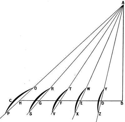| AB = chord. | AB = cambered surface. |