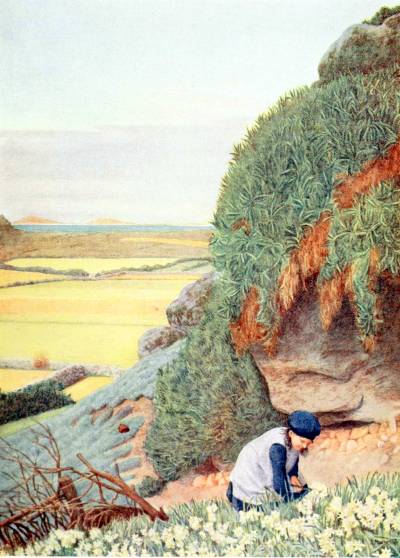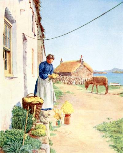 NOWHERE do the flowers bloom so early as on the sunny southern slopes of St. Martin’s Isle; and as one draws near from St. Mary’s one may see the varied colours of the flower-patches, from palest lemon through all the shades of yellow down to deep orange, clothing the face of the hills.