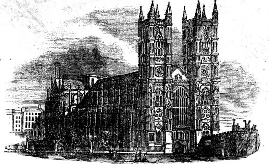From this period to the reign of Edward the Confessor, the first Abbey remained a monument of the sacrilegious fury of the times; but, by the prevailing influence of Christianity in that reign, the ruins of the ancient building were cleared away, and[Pg 4] a most magnificent structure, for that age, erected in their place. In its form it bore the figure of a cross, which afterwards became a pattern for cathedral-building throughout the kingdom. That politic Prince, to ingratiate himself with his clergy, not only confirmed all former endowments, but granted a new charter, in which he recited the account of St. Peter’s consecration, the ravages of the Danes, and the motives which prompted him to restore the sacred edifice to its former splendour, and endow it with more ample powers and privileges. This charter concluded with solemn imprecations against all who should in time to come, dare to deface or to demolish any part of the building, or to infringe the rights of its priesthood.