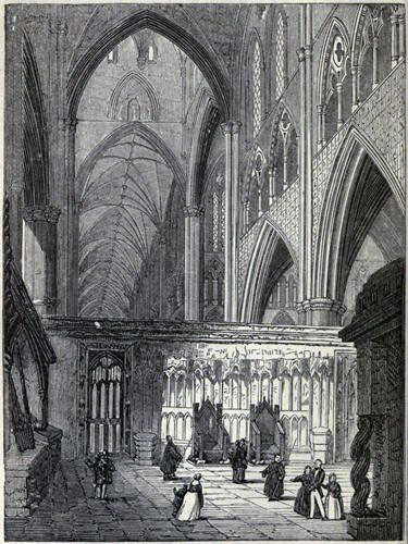 [Pg 5]The new Choir, designed by Mr. Blore, Architect to the Abbey, is in the style of architecture which prevailed during the reign of Edward the Third; and executed by Mr. Ruddle, of Peterborough, in 1848.