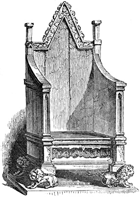 The solemn offices of crowning and enthroning the sovereigns of England takes place in the centre of the sacrarium, and beneath the lantern is erected the throne at which the peers do homage. When the crowns are put on, the peers and peeresses put on their coronets, and a signal is given from the top of the Abbey for the Tower guns to fire at the same instant.