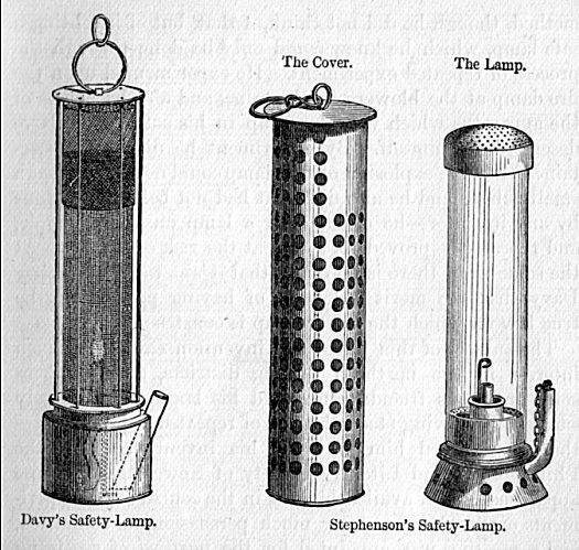 Frequency of colliery explosions—Accident in the Killingworth Pit—Stephenson’s heroic conduct—A safety-lamp described—Dr. Clanny’s lamp—Stephenson’s experiments on fire-damp—Designs a lamp, and tests it in the pit—Cottage experiments with coal-gas—Stephenson’s second and third lamps—The Stephenson and Davy controversy—Scene at the Newcastle Institute—The Davy testimonial—The Stephenson testimonial—Merits of the “Geordy” lamp |