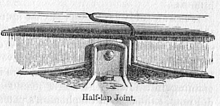 To bear the load of heavy engines run at high speeds, a much stronger and heavier road was found necessary; and shortly after the opening of the Liverpool and Manchester line, it was entirely relaid with stronger materials. Now that express passenger-engines are from thirty to thirty-five tons each, the weight of the rails has been increased from 35 lbs. to 75 lbs. or 86 lbs. to the yard. Stone blocks have given place to wooden sleepers; rails with loose ends resting on the chairs, to rails with their ends firmly “fished” together; and in many places, where the traffic is unusually heavy, iron rails have been replaced by those of steel.