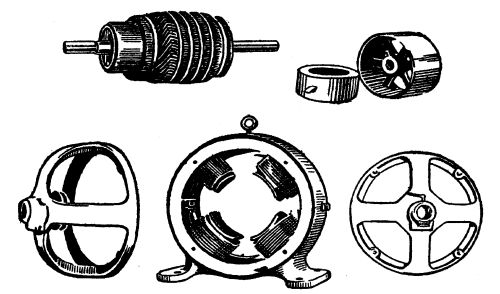 | Direct-connected generating sets—Belt drive—The switchboard—Governors and voltage regulators—Methods of achieving constant pressure at all loads: Over-compounding the dynamo; A system of resistances (a home-made electric radiator); Regulating voltage by means of the rheostat—Automatic devices—Putting the plant in operation | 192 |