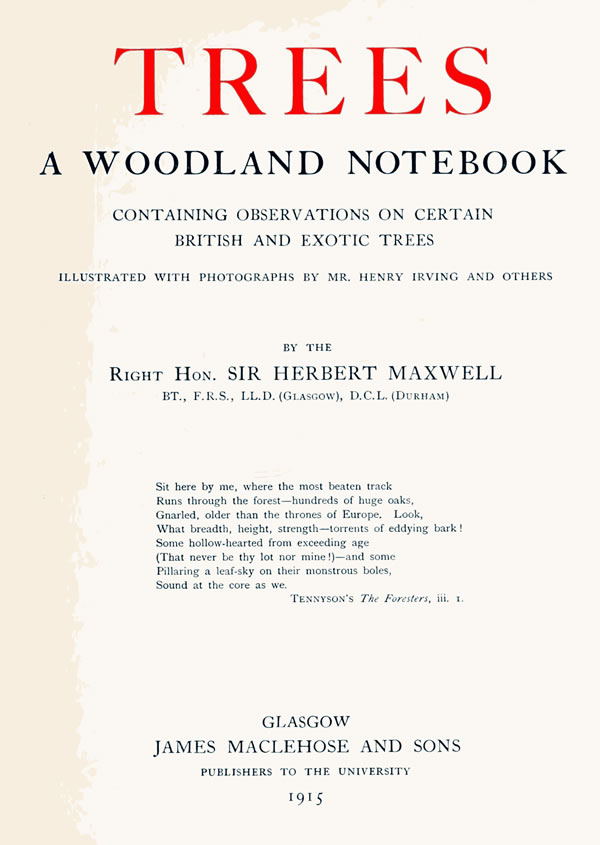 I have endeavoured in these pages to recapitulate in a convenient form what has been ascertained by experiment of the behaviour of foreign trees under British conditions, relying, not blindly, upon the conclusions arrived at by masters of the craft, as corroborated or checked by personal observation of a practical and somewhat sedulous nature, extending over youth, manhood, and old age.