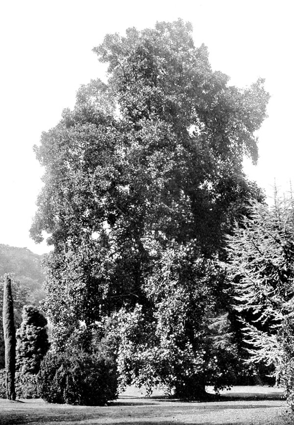 [29] It is nowhere truly wild, and is a relic of a very ancient flora. Geological evidence shows that it is the last survivor of an ancient family, which flourished during Secondary times, and can even be traced back to the Primary rocks. In Mezozoic times this genus played an important part in the arborescent flora of north-temperate regions. Fossil remains, almost identical with the present existing species, have been found, not only in this country and North America, but also in Greenland.—A Naturalist in Western China, by E. H. Wilson, ii. 45.