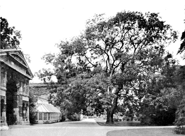 This tree was first brought to England in 1795 by Archibald Menzies, who, visiting Chile with Captain Vancouver, sowed some araucaria nuts on board ship and brought home six live seedlings. It was not till 1844, however, that any fresh supply of seeds reached this country, when William Lobb, collecting for the firm of Veitch, secured a large quantity. The quaint character of the tree, the readiness with which the seeds germinated, and its thorough adaptation to British soil and climate soon caused it to be widely distributed, so that at this day there is[234] no tree with which people are more familiar than the puzzle monkey. At the same time, there is no tree which has suffered so much from injudicious planting among inappropriate surroundings. It is a creature demanding broad light and free, pure air; and I know of no more dismal object in the world of plants than an araucaria stuck down in front of a suburban villa, stifled with smoky deposit, retaining a despairing grip of life, whereof the only visible sign is the green tips of its poor blackened branches. It is treatment such as this which has caused the araucaria to lose favour with British planters. To realise what this tree is capable of in our hands, one has but to visit the Earl of Stair's grounds at Castle-Kennedy and stroll down a wide grassy avenue, two hundred yards in length, bordered on either side by araucarias over 50 feet high (see plate at page 232).