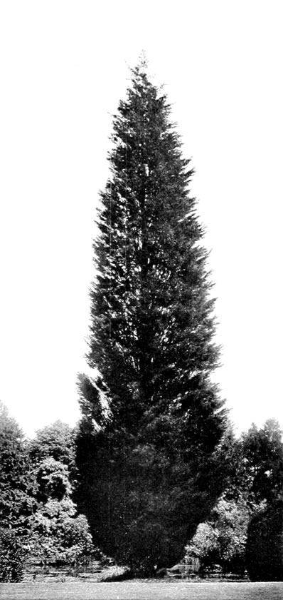 The Irish or Florence Court yew, described above, found high favour with garden designers seventy or eighty years ago, owing to its fastigiate habit; but, at best, it is a funereal object, and a more cheerful effect may be obtained by planting Incense Cedar (Libocedrus decurrens), Lawson Cypress or Pencil Cedar (Juniperus virginiana).
