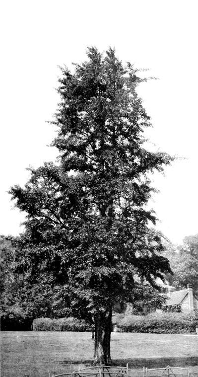 The first European botanist to mention the gingko was Kæmpfer, who found it in Japan in 1690, but it was not introduced to England until more than sixty years later. In Scotland it does not seem to have been often planted, though it is quite hardy in the milder districts. The only considerable specimen I have seen north of the Tweed was one 40 or 50 feet high on the banks of the Ayr at Auchincruive. This was blown down some years ago, but when I saw it last it was growing vigorously from the stool.