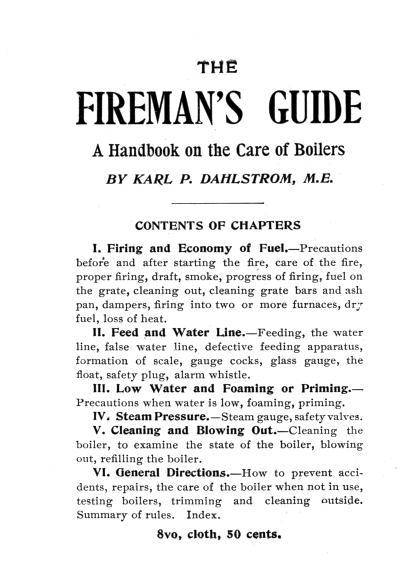 I. Firing and Economy of Fuel.—Precautions before and after starting the fire, care of the fire, proper firing, draft, smoke, progress of firing, fuel on the grate, cleaning out, cleaning grate bars and ash pan, dampers, firing into two or more furnaces, dry fuel, loss of heat.