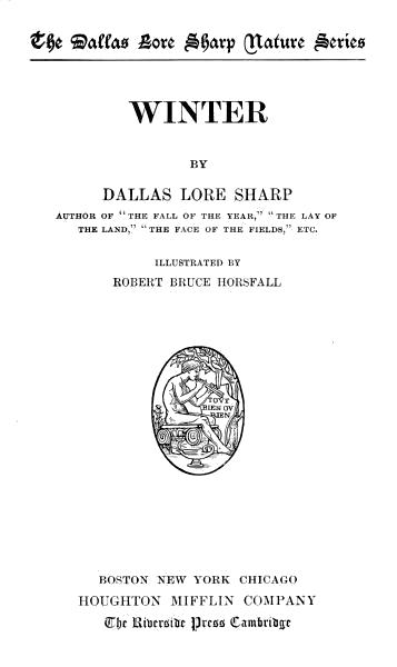As in The Fall of the Year, so here in Winter, the second volume of this series, I have tried by story and sketch and suggestion to catch the spirit of the season. In this volume it is the large, free, strong, fierce, wild soul of Winter which I would catch, the bitter boreal might that, out of doors, drives all before it; that challenges all that is wild and fierce and strong and free and large within us, till the bounding red blood belts us like an equator, and the glow of all the tropics blooms upon our faces and down into the inmost of our beings.