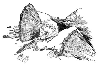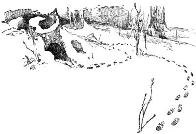 The creature had moved leisurely—that you could tell by the closeness of the prints. Wide-apart tracks[Pg 4] in the snow mean hurry. Now a cat, going as slowly as this creature went, would have put down her dainty feet almost in a single line, and would have left round, cushion-marked holes in the snow, not triangular, nail-pointed prints like these. Cats do not venture into holes under stumps, either.