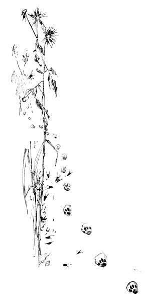 Here the hound had thrust his muzzle into a snow-capped pile of slashings, had gone clear round the pile, then continued on his way. But we stopped; for out of the pile, in a single, direct line, ran a number of mouse prints, going and coming. A dozen white-footed mice might have traveled that road since the day before, when the snow had ceased falling.