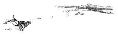 Nor was this all; for up the footpath through the birches came the marks of two dogs. They joined the marks of the hare. And then, back along the edge of the woods to the bushy ridge, we saw a pretty race.