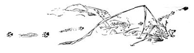Those legs carried him a clear twelve feet in some of the longest leaps for the ridge; and they carried him to safety, so far as we could read the snow. In the medley of hare-and-hound tracks on the ridge there was no sign of a tragedy. He had escaped again—but how and where we have still to learn.
