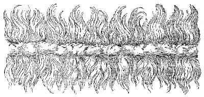 At this period, physicists were of the belief that lightning was "an exhalation of nitre and sulphur, [274]" acting something after the fashion of powder, and able to burn up or throw over everything encountered on its route. In this girdle traced by the lightning, the author sees a scattering of all the constituents of the brass wire, transformed into all kinds of colours due to the dilation of the copper, melted and vaporized over the width of two feet, the colours, in which yellow predominates, varying according to the thickness and the inequalities of the "projection."