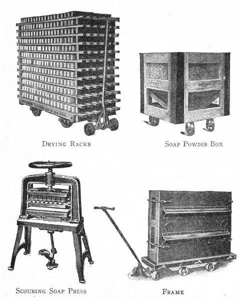 Watt, A. Art of Soapmaking. A practical handbook of the manufacture of hard and soft soaps, toilet soaps, etc. Seventh Edition, revised and enlarged. 43 illustrations. 5-1/4 × 7-1/2. Cloth. 323 pp. London, 1918. $4.00