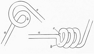 the wire is inserted in the cut tail (b, Fig. 18) and the