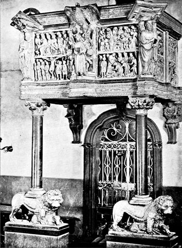 [302] "Superstans marmorariis laborantibus, lapides marmoreas pro ecclesia et palatio Sancti Marci presidens fabrice palatii apostolici."—Muntz, Les Arts à la Cour des Papes, vol. i. p. 606. It is interesting to note that the head of the laborerium bore the same title as in A.D. 1250, when Guido da Como wrote on his pulpit, "Superstans Turrisianus."