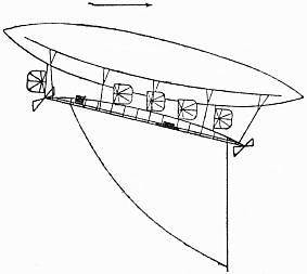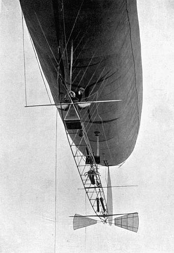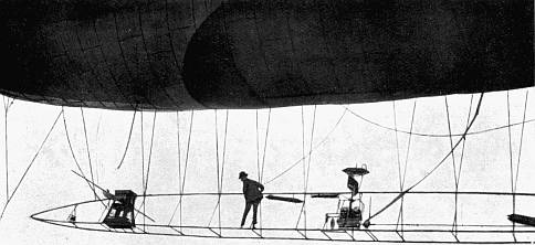 My "No. 10," which has been called "The Omnibus." Its gas capacity of 2010 cubic metres (nearly 80,000 cubic feet) makes its balloon greater in size and lifting power than even the racing "No. 7"; and should I, indeed, desire at any time to shift to it the latter's keel, all furnished with the racing motor and machinery, I might combine a very swift air craft capable of carrying myself, several aids and a large supply of both petroleum and ballast—not to speak of war munitions were the sudden need of a belligerent character.