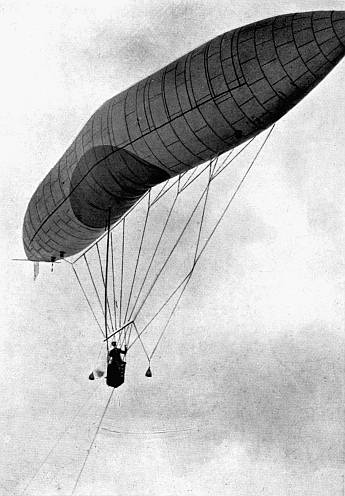 I think that the simple fact that I consented on condition that she would take a few lessons in the handling of the motor and machinery speaks eloquently in favour of my own confidence in the "No. 9." She had three such lessons, and then on 29th June 1903, a date that will be memorable in the Fasti of dirigible ballooning, rising from my station grounds in the smallest of possible dirigibles, she cried: "Let go all!"