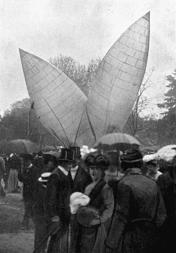 A In the early morning of 12th May 1902 M. Augusto Severo, accompanied by his mechanician, Sachet, started from Paris on a first trial with the "Pax," the invention and construction of M. Severo. The "Pax" rose at once to a height almost double that of the Eiffel Tower, when, for reasons not precisely known, it exploded, and came crashing to earth with its two passengers. The fall took eight seconds to accomplish, and the luckless experimenters were picked up broken and shapeless masses.
