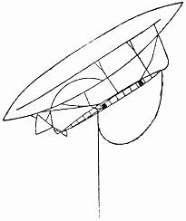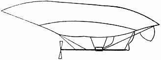 So I built my "No. 9," the smallest of possible dirigibles, yet very practical indeed. As originally constructed, its balloons capacity was but 220 cubic metres (7770 cubic feet), permitting me to take up less than 30 kilogrammes (66 lbs.) of ballast—and thus I navigated it for weeks, without inconvenience. Even when I enlarged its balloon to 261 cubic metres (9218 cubic feet) the balloon of my "No. 6," in which I won the Deutsch prize, would have made almost three of it, while that of my "Omnibus" is fully eight times its size. As I have already stated, its 3 horse-power Clement motor weighs but 12 kilogrammes (26½" lbs.). With such a motor one cannot expect great speed; nevertheless, this handy little runabout takes me over the Bois at between 20 and 25 kilometres (12 and 15 miles) per hour, and this notwithstanding its egg-shaped form (Fig. 15), which would seemingly be little calculated for cutting the air. Indeed, to make it respond promptly to the rudder, I drive it thick end first.