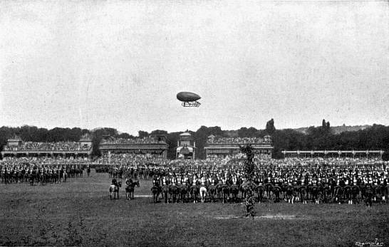 "Come and choose a place to land," they said;[307] "we will mark it out for you in any case." And, as I continued to insist on my uncertainty of being present, they very courteously picked out and marked a place for me themselves, opposite the spot to be occupied by the President of the Republic, in order that M. Loubet and his staff might have a perfect view of the air-ship's evolutions.