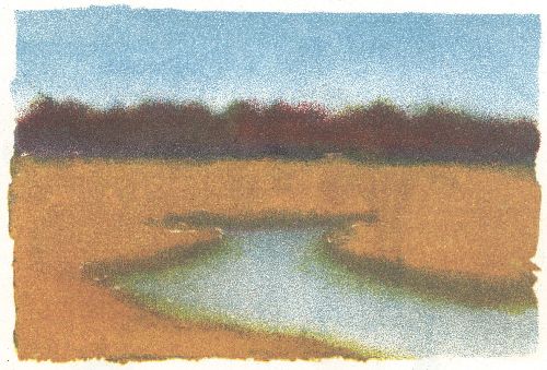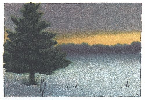 Paint a winter sunset, with an evergreen against the sunset sky.[Pg 11]