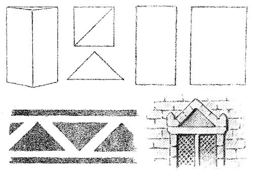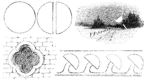 Draw a two-inch square. On this lay tablets—the inch square in the center, with semicircles about it. Draw around it. Draw around the semicircles.