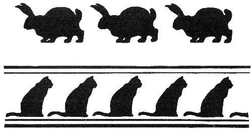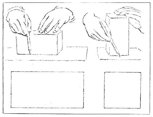 Lay a row of tablets: first, an oblong; then a square. Draw this border on a paper towel.[Pg 53]