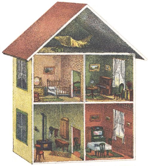 Draw a house with a triangle in the roof.[Pg 54]