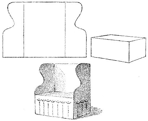 Fold and crease two inches from each short edge. Shape the sides. Fold around the seat. Paste.[Pg 67]