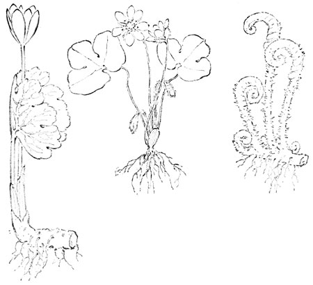 Grasses and sedges are some of the "green things" that need but little encouragement. In fact, they grow to greatest size in some neglected fence corner or in places so wet that other plants do not flourish. Grasses lack the bright colors of flowers, but they are fine studies to draw, because of their simple, direct growth and the interesting shapes of their leaves and heads.