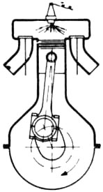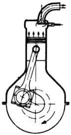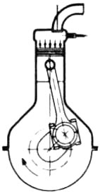 Just before piston is at dead center fuel oil is sprayed into cylinder and spontaneously ignited. |