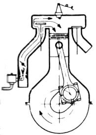 | Mixture of air and gasoline enters cylinder from carburetor. |